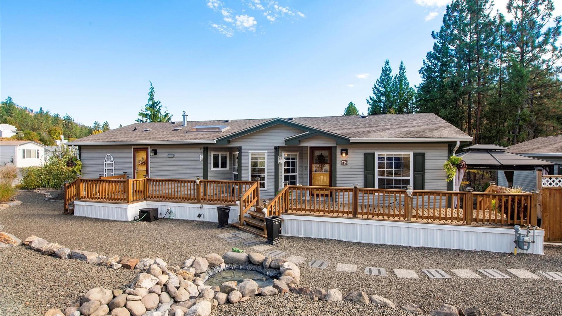 Welcome to Pinewood Villa — a peaceful 55+ bare land strata community in the heart of Shannon Lake. This bright and beautifully maintained 3-bedroom, 2-bathroom rancher offers nearly 1,500 sq ft of single-level living on a private, low-maintenance 0.19-acre lot. Step inside and you’ll immediately notice the thoughtful upgrades that set this home apart - this home shows like a custom house versus a manufactured home. The kitchen features updated cabinetry, granite countertops, and stainless-steel appliances, while both bathrooms have been modernized with new sinks, toilets, and granite surfaces. Heated tile flooring runs through the kitchen, dining area, hallway, bathrooms, and laundry room — with engineered hardwood in the living room and primary bedroom. The spacious primary suite includes a doorless walk-in shower with heated seat and wall, offering comfort and accessibility. Other updates include a new water heater, R42 insulation, and an oversized single garage. Enjoy outdoor living on the covered patio with gazebo (built in 2017) and the easy-care, xeriscaped yard. RV parking is available, and the strata fee is just $85/month. Located close to shopping, golf, trails, and amenities, this is the perfect place to rightsize without compromise. Pride of ownership is evident throughout — just move in and enjoy.